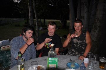 Jsem se tu narodil! Jinak Štěpána jsem potkal v létě 2007, v hospodě na Krajánku. Byl trochu mimo, tak jsem ho vzal na deco pálenky a další den ho protáhnul vesnicí. Docela jsme si rozuměli, a jak jsme si tak povídali, napadlo nás zkusit otevřít penzionek. Sehnaly se peníze, vybral jsem a koupil na Eibenthale domek a v únoru se na něj kluci přijeli podívat. Seznámil jsem se s Honzou, a protože nešlo nic dělat, vymysleli jsme naši první společnou akci: pochod do Bígru a zpátky ve vysokém sněhu. Odešli jsme za tmy, ušli kolem 40 km, přišli za tmy a myslím, že na tomhle „výletě“ jsme si začali věřit, že všechno bude fungovat. V dubnu mi pak kluci přijeli pomoct s opravami na domku, a když jsme u práce odpočívali, napadlo nás udělat hospodu ze staré stodoly. V červnu už přijeli první turisté, za rok v červnu první škola a příští červen se těšíme na Vás!